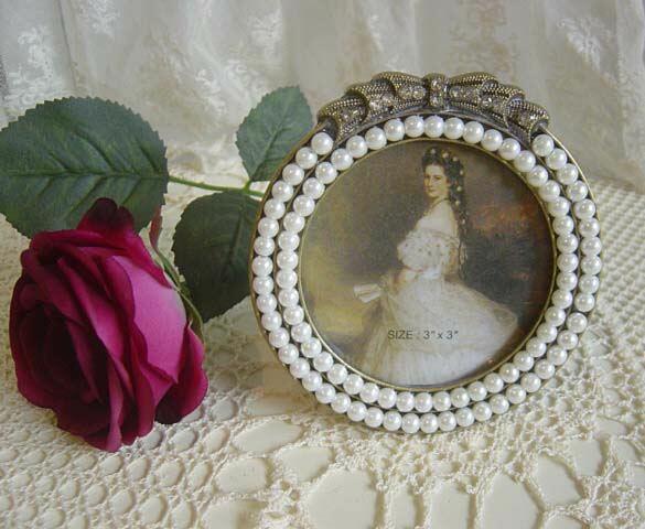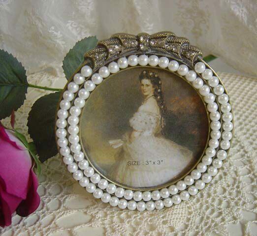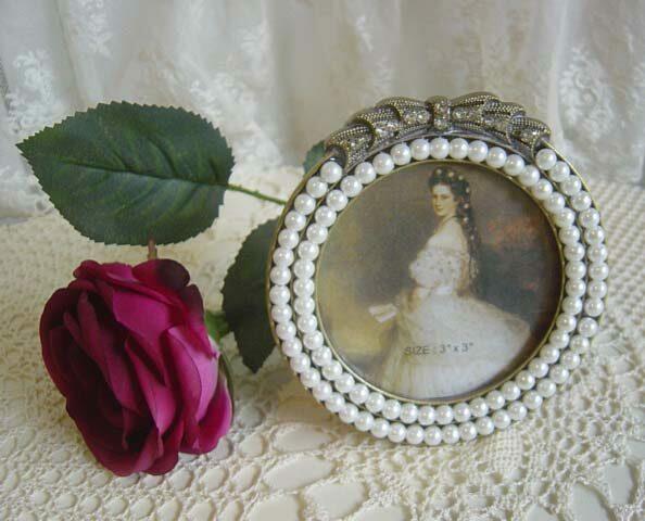 ヴィクトリアンなパール飾りが素敵な小さなフォトスタンド
