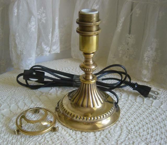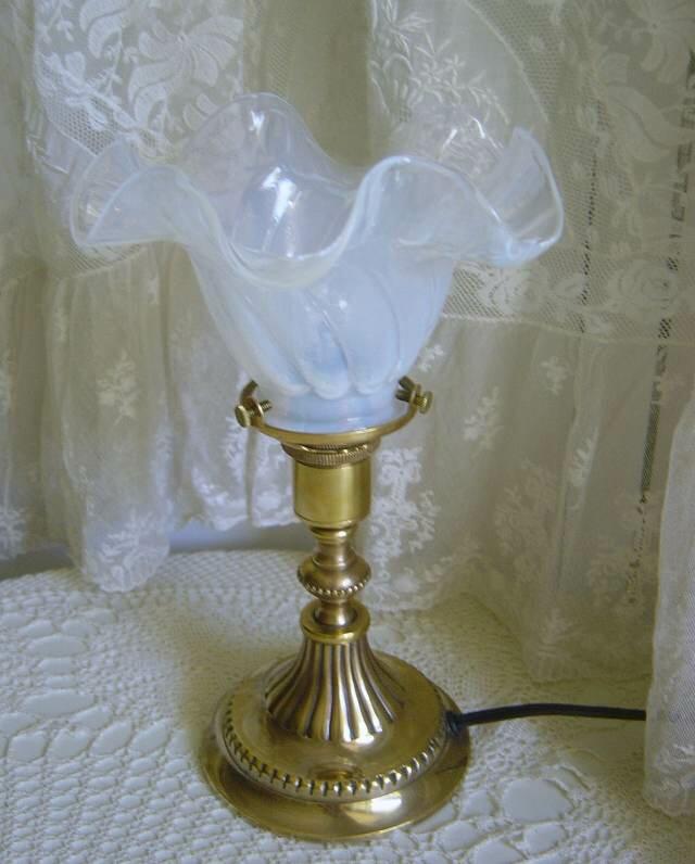 フレンチアンティークスタイルの乳白を帯びた美しいランプシェードの美しさがひときわ映えるシンプルな作りの真鍮テーブルランプセットです。