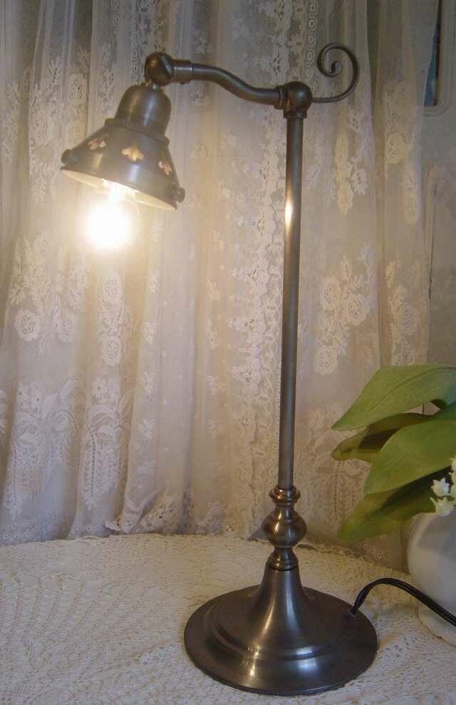 ヨーロピアンデザインのテーブルランプスタンドを再現して、リーズナブルな価格で作られたアンティーク色のテーブルスタンドです。 灯りの雰囲気作りにお部屋のコーナー、ベッドサイドテーブルなどでお使いいただけます。