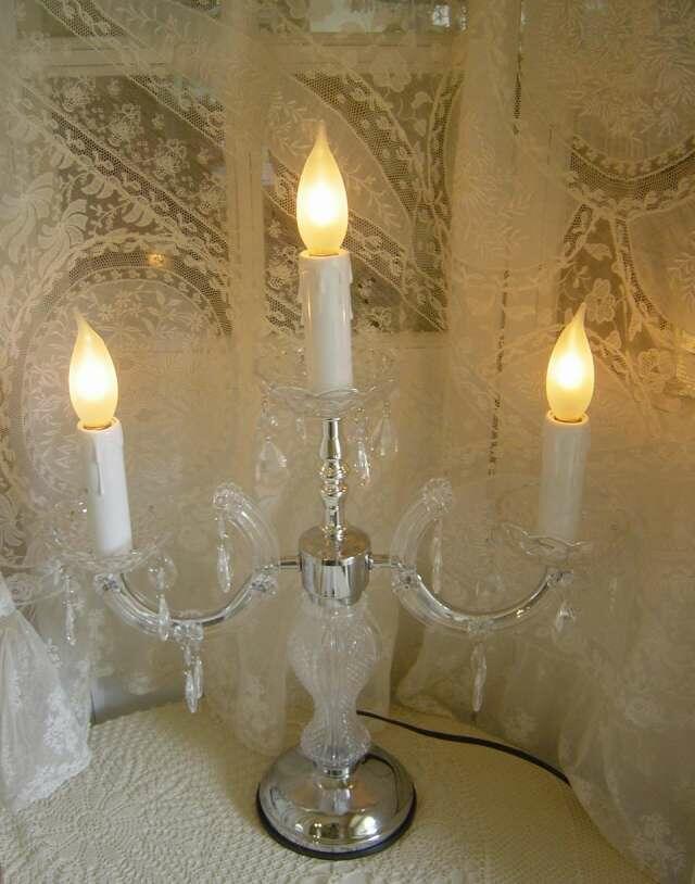 まるで本物のロウソクが灯っているかのよう...。燭台の形をした素敵なキャンドル型のシャンデリアランプです。 鏡にキャンドルが反射するように、大きめの鏡をかけた壁の前のコンソールテーブルなどに置いて、鏡にキャンドルの灯りが反射するようにロマンティックな灯りの演出をしてみたら、きっと素敵な空間になるでしょうね。