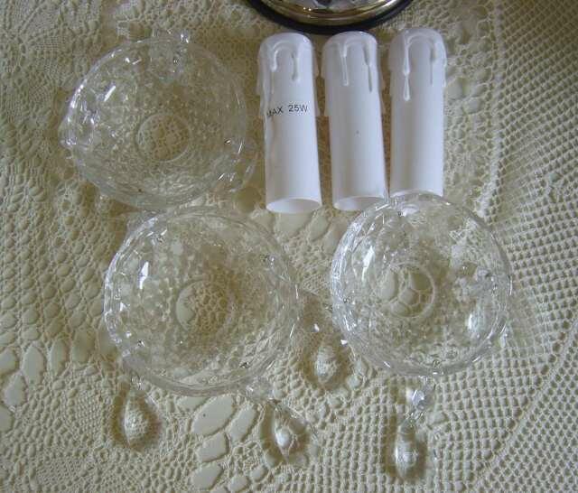 ランプスタンドの3つのアーム部分にガラスのお皿をそれぞれ入れて、キャンドルカバーを下までしっかり差し込んで固定します。