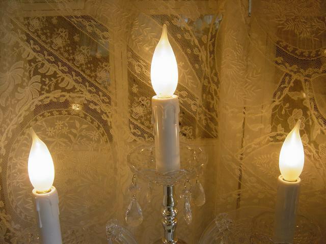 普通のシャンデリア球を使用した場合、もう少しおとなしめとなり、以下の画像の雰囲気を楽しんでいただけます。