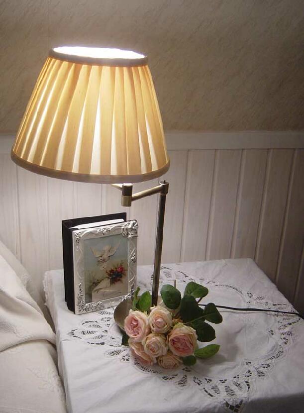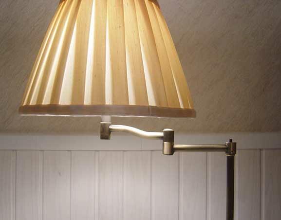 * アンティークゴールド色のスタンドベースはシェードの取り付け部分の上のネジで、シェードの角度を自由に変えることができるスイング式アームとなっています。