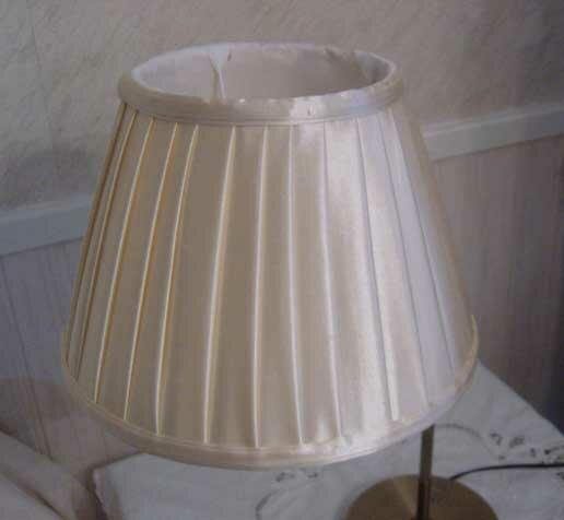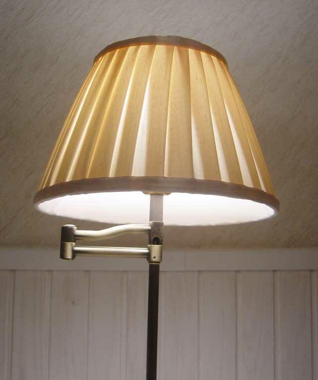 シルキーな光沢をもったシャンパンベージュカラーのファブリックシェードがとても上品で素敵です。