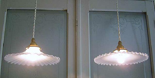 ミルクガラス(ミルクグラス)のフレンチシェード(フラットフリル)。