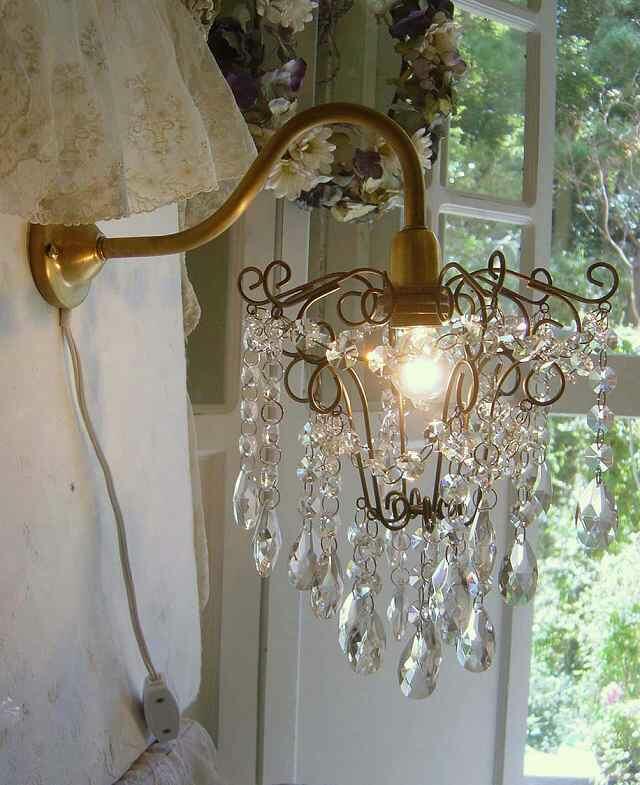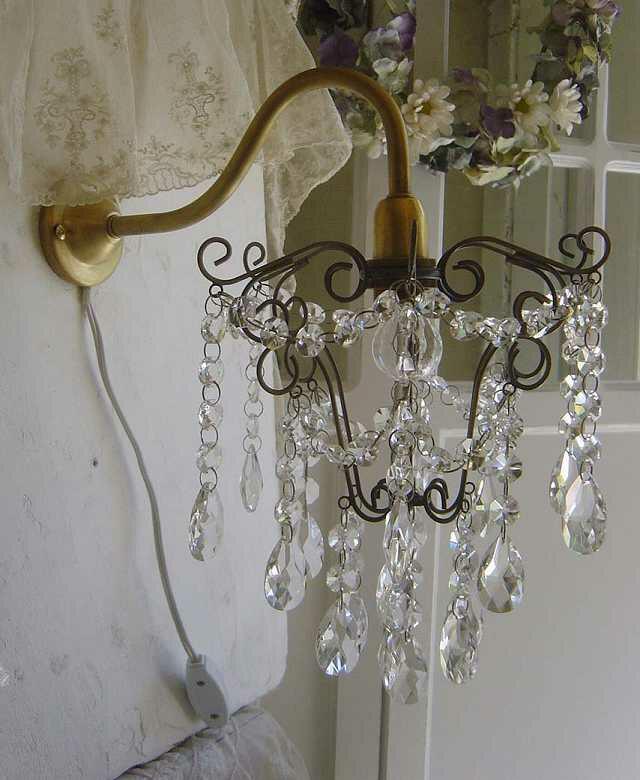 壁面の好きなところに簡単に取り付けられるとっても便利な簡易式ウォールランプとクリスタルガラスをたっぷり使ったアンティークスタイルの素敵な一灯式シャンデリアを合わせたブラケットセットのご紹介。 コンセント仕様の簡易式ブラケットはアンティーク仕上げとなっており、電気工事なしに壁や柱の好きな位置に取り付けられる優れものです。
