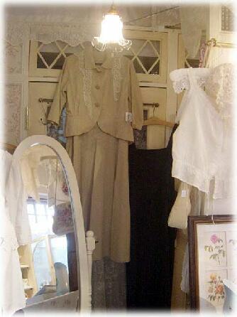 * お洋服&服飾雑貨売り場で、アンティークレースコラージュの素敵なベレー帽、アンティークリメイクの素敵なお洋服、フレンチカントリーメーカーのリネンの可愛いワンピース、服飾雑貨をご紹介しています。